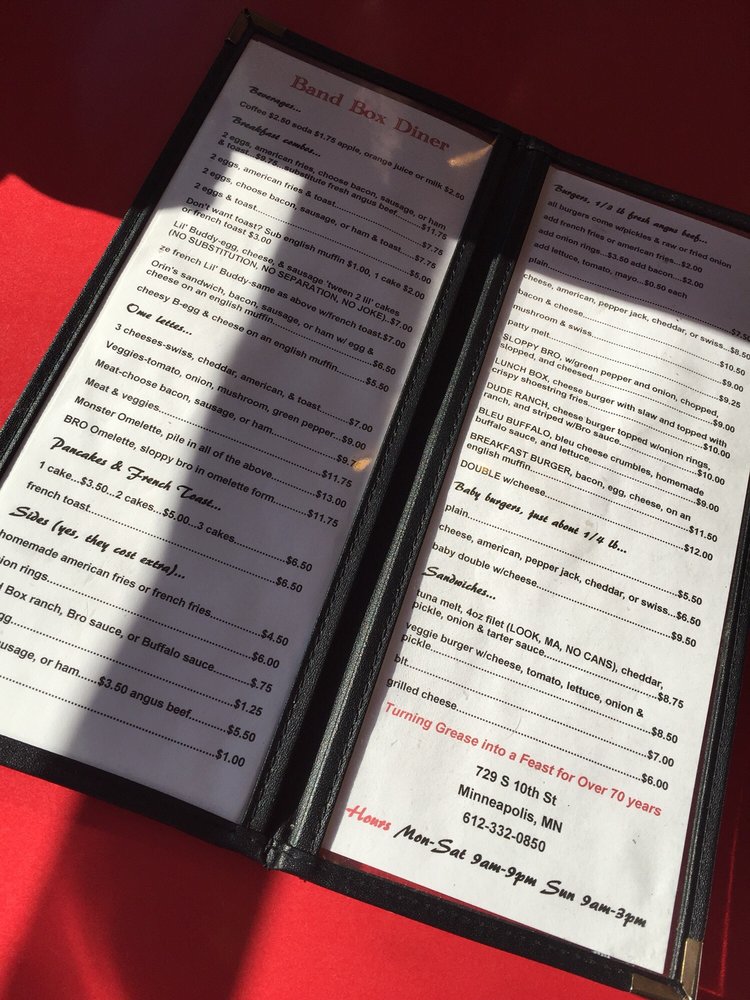 Welcome to Band Box Diner, a charming eatery nestled in the heart of Minneapolis. Specializing in burgers, breakfast, and brunch, this diner embodies the spirit of a classic greasy spoon. Here, every dish is a celebration of comforting flavors and hearty portions.